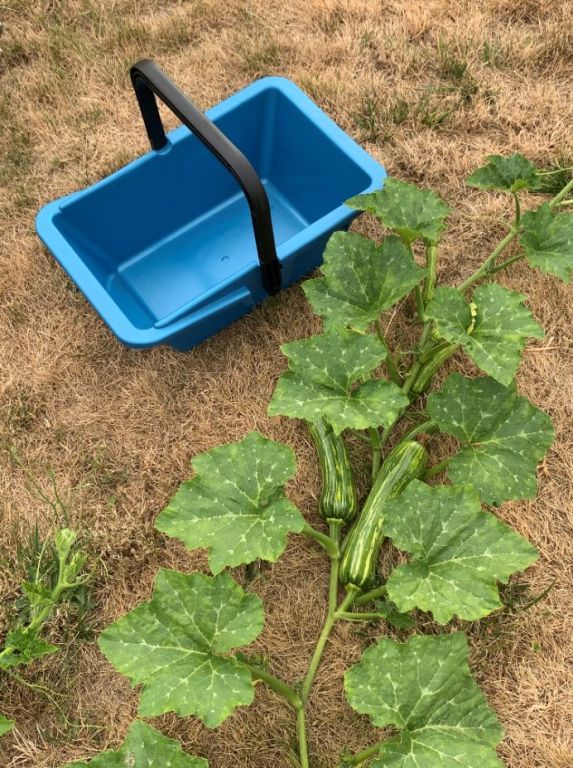 Panier de récolte plastique 16L bleu avec anse verrouillable.